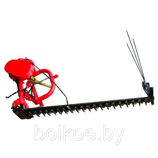 - Режущий аппарат: секторно-пальцевый с подвижным ножом и неподвижными пальцами с противорежущими пластинам, привод от ВОМ трактора